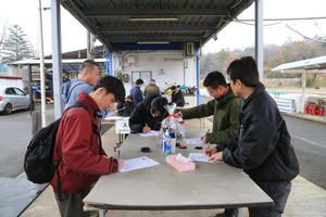 コントロールタワー下で 参加受付を行ってます 受付時間は「8:30〜9:15」 となっていますが、間に合わない方は 走行が始まっていても スタッフに声かけしてもらえれば 随時受付しています! 途中参加、午後から参加や午前のみの場合でも 値引きなどはなく参加費は通常通りです |