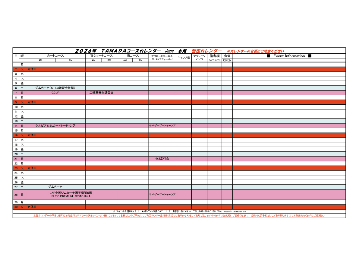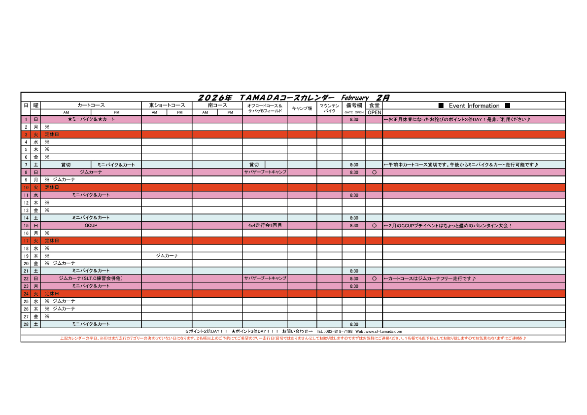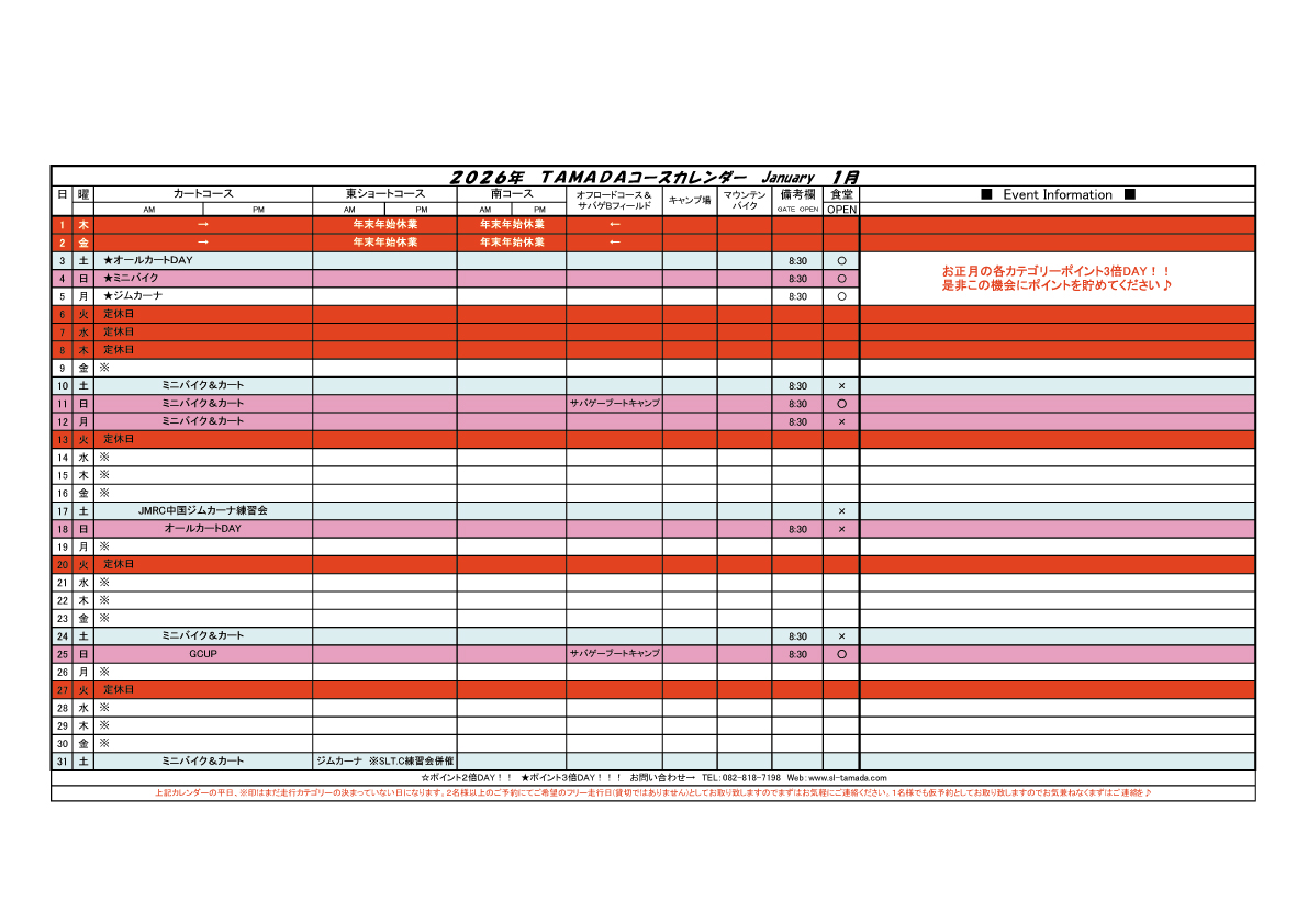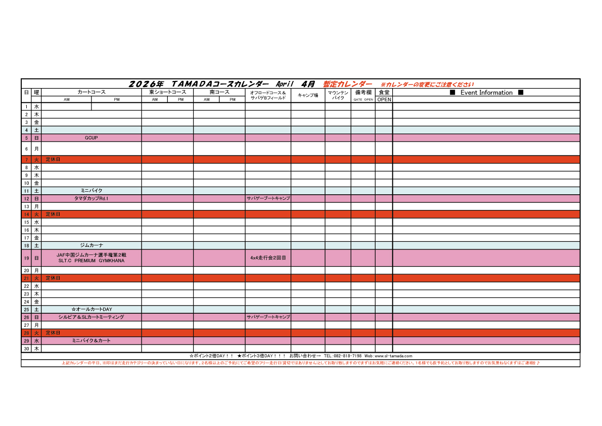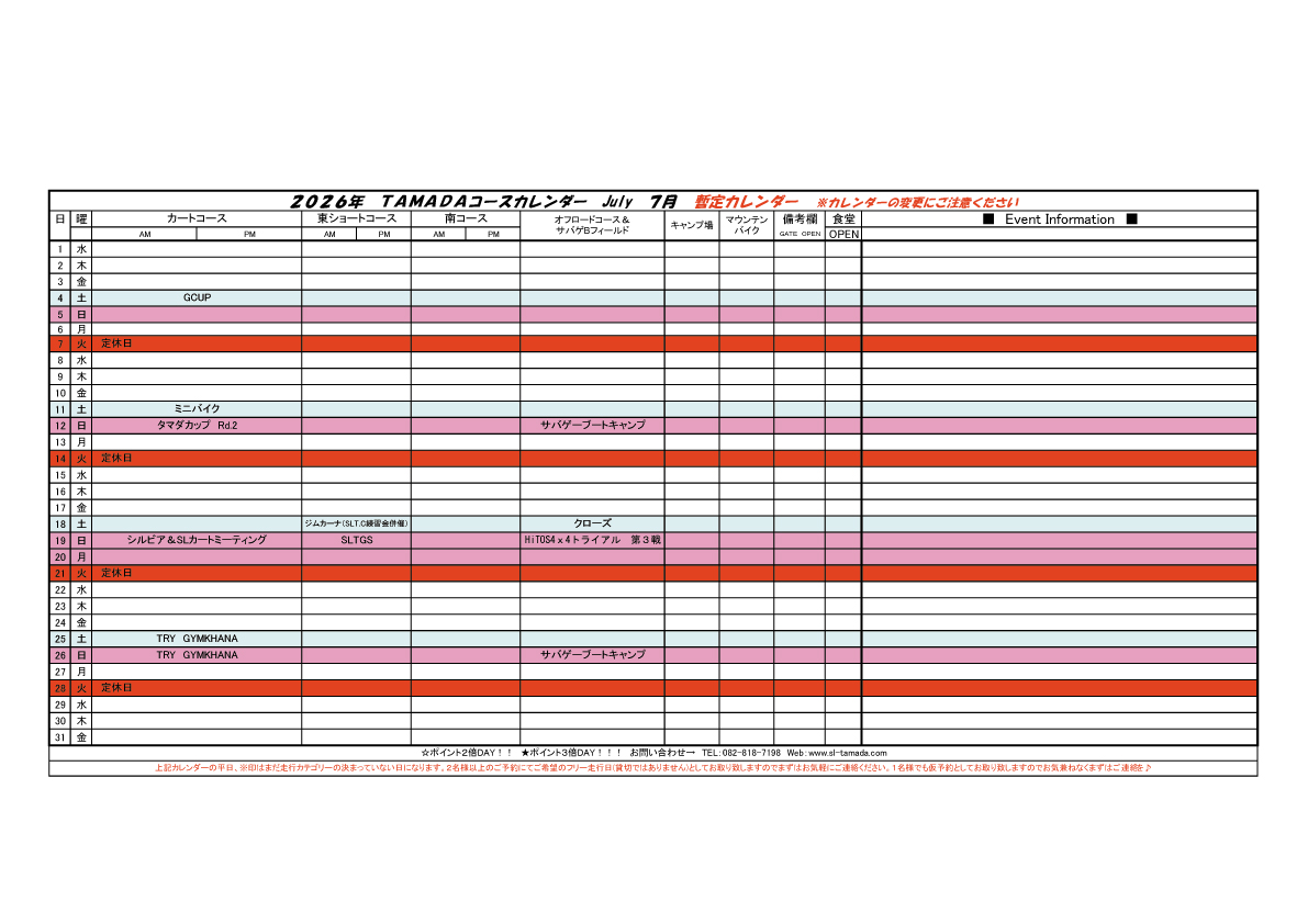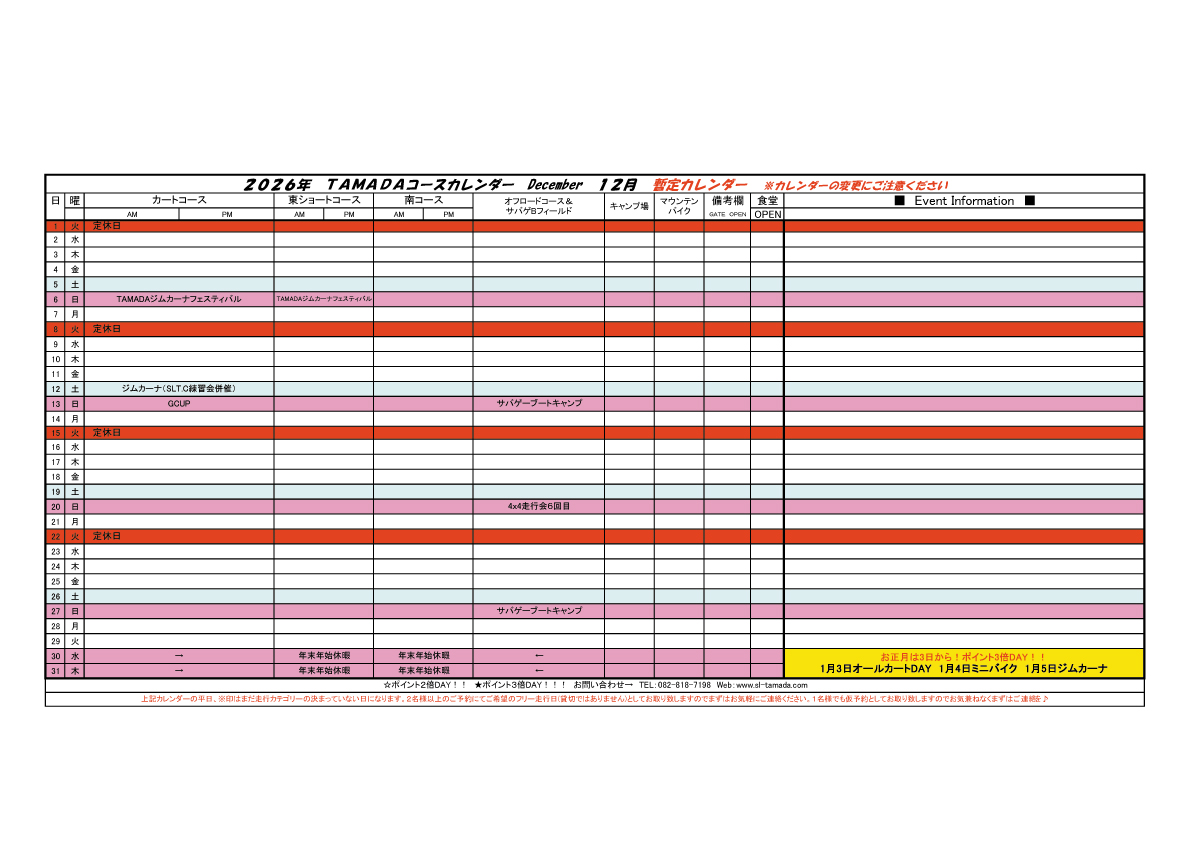 2026 TAMADAカレンダー
