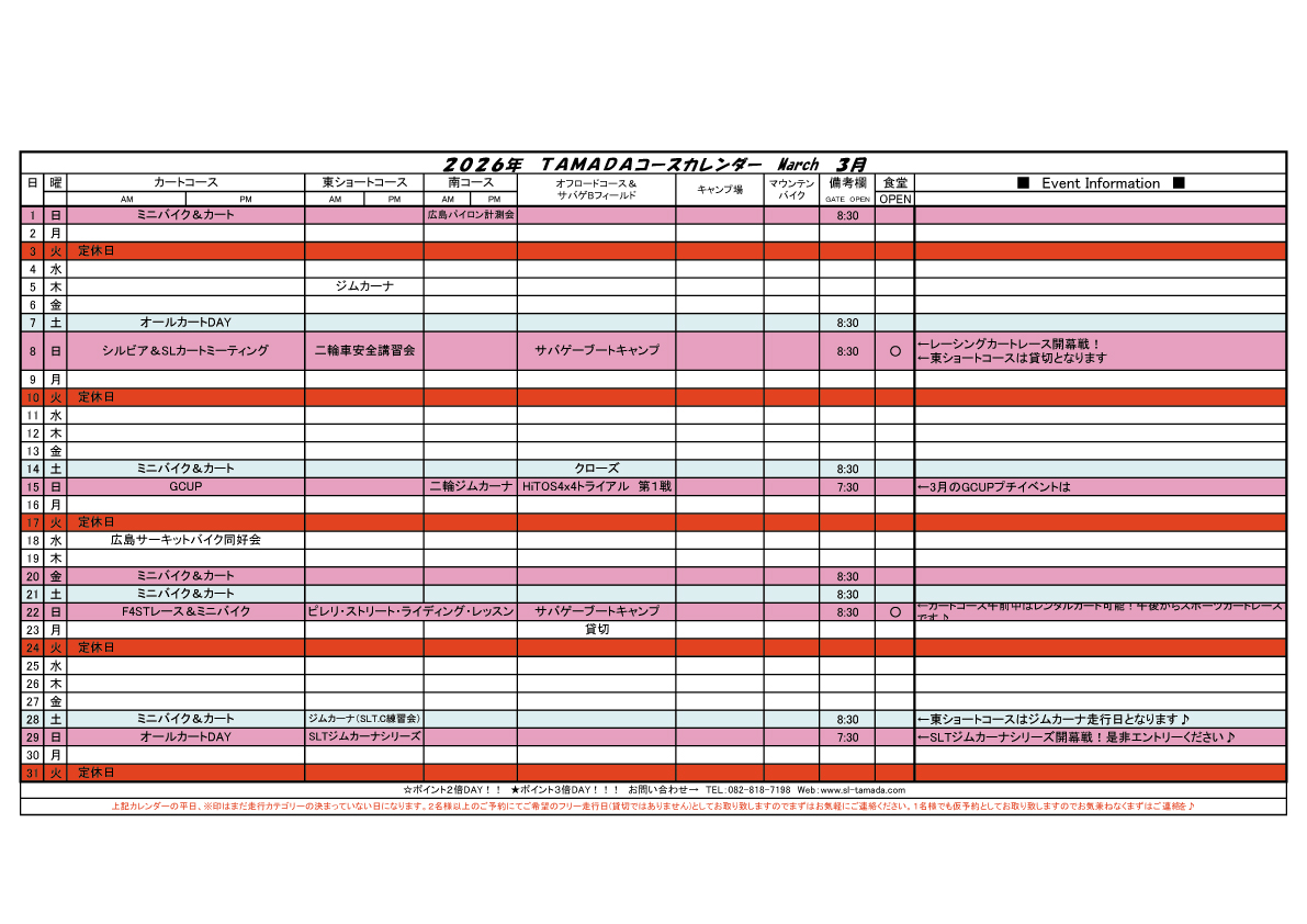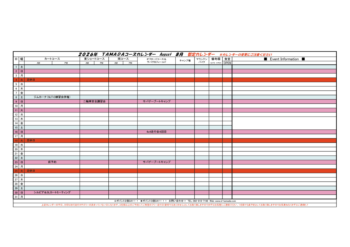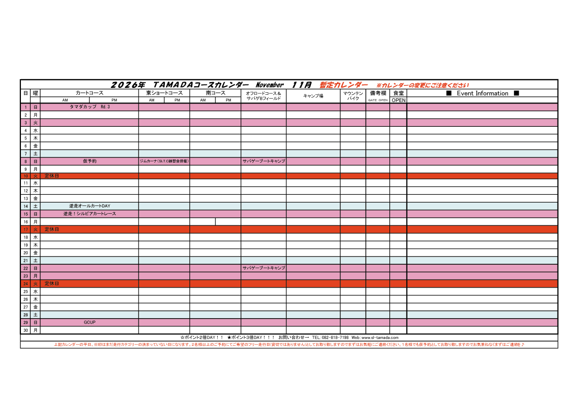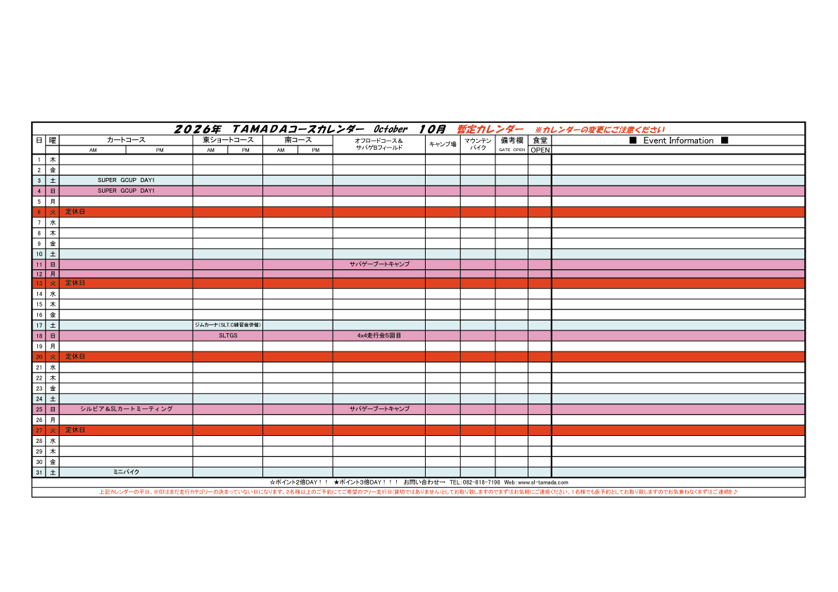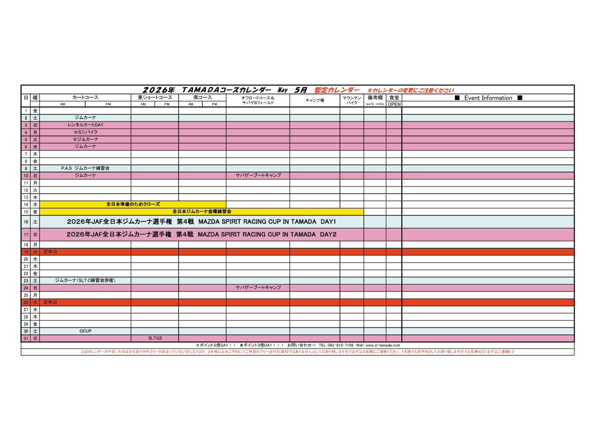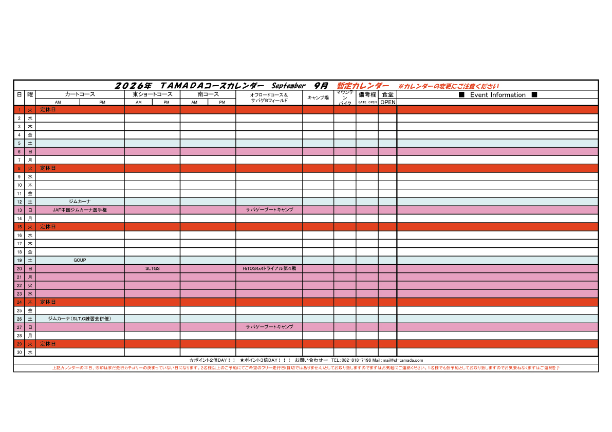 2026 TAMADAカレンダー