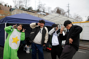 | 寒さ対策、雨対策と 常連の皆様は準備万端!! |
