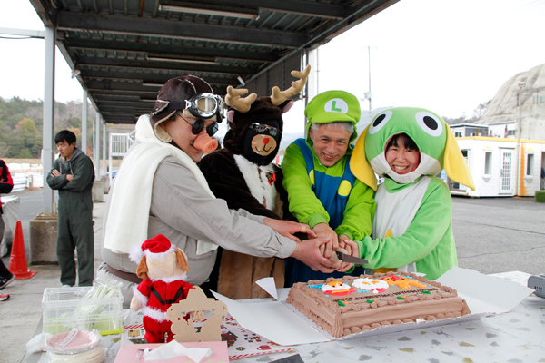 | そして、恒例となるケーキ入刀は 仮装してくださったGカップ常連さんに! いつもGカップを盛り上げていただき 本当にありがとうございました〜! 来年も、よろしくお願いしま〜す(笑) |
