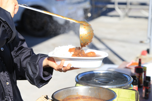 事前エントリーの方は 昼食(Gカップカレー)付き 朝の受付と同じ場所で Gカップカレーを配ってます! Gカップカレーは辛さ控えめなので 辛さ調整の香辛料用意してます お好きなだけお使いくださいね〜! |