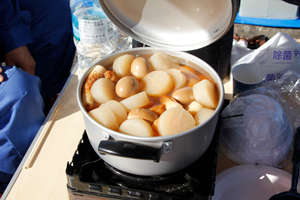 | そして、おでん屋さん発見!? Gカップ常連のハタノさんが アツアツのおでんを作って みんなに振る舞われてました〜! |