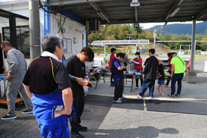 コントロールタワー下で 参加受付を行ってます 受付時間は「8:30〜9:15」 となっていますが、間に合わない方は 走行が始まっていても スタッフに声かけしてもらえれば 随時受付しています! 途中参加、午後から参加や午前のみの場合でも 参加費は通常通り6600円です |