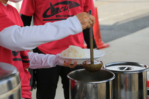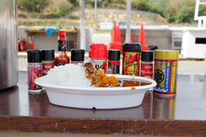 事前エントリーの方は 昼食(Gカップカレー)付き 朝の受付と同じ場所で Gカップカレーを配ってます! Gカップカレーは辛さ控えめなので 辛さ調整の香辛料用意してます お好きなだけお使いくださいね〜! |