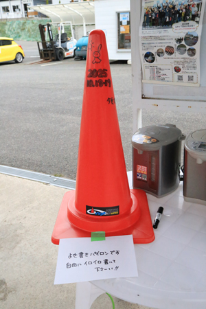 | 今年もスーパーGカップ恒例の 寄せ書きパイロンを用意しました これで、寄せ書きパイロンも11本目!! あと何年したら、 コース上全てのパイロンが 寄せ書きパイロンになるかなぁ〜(笑) |