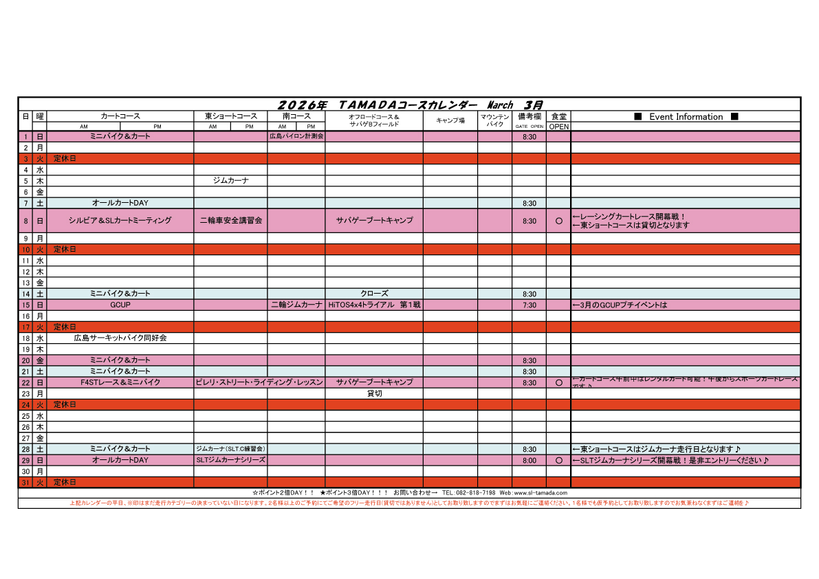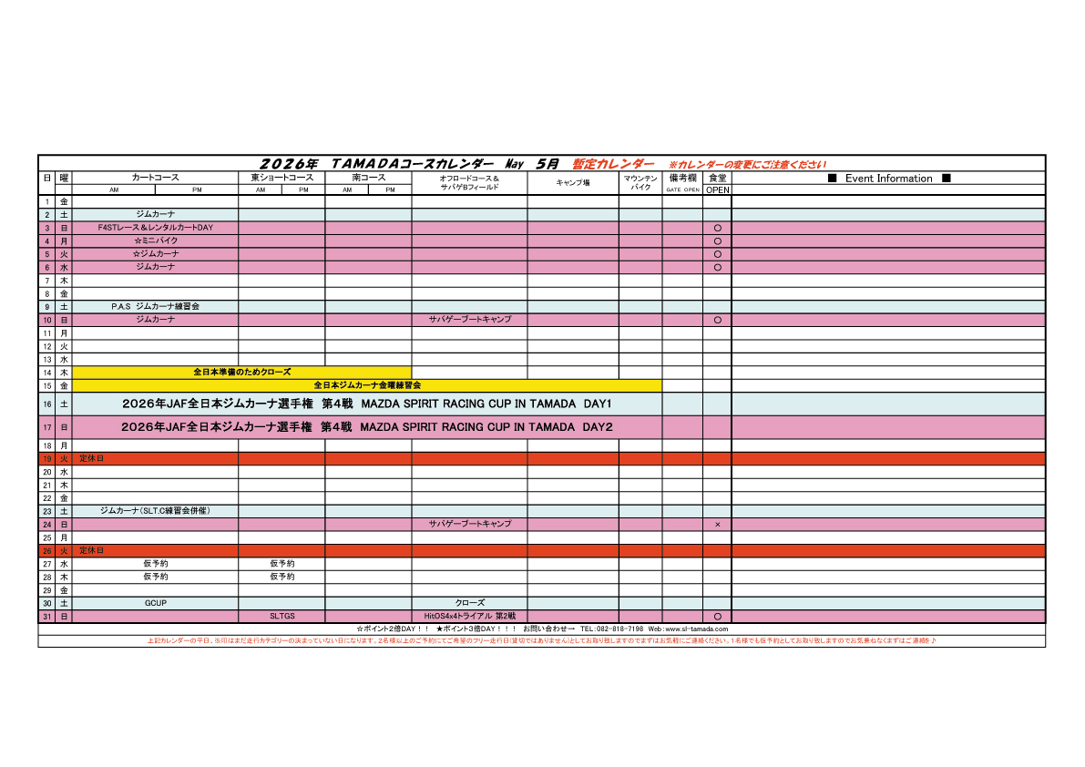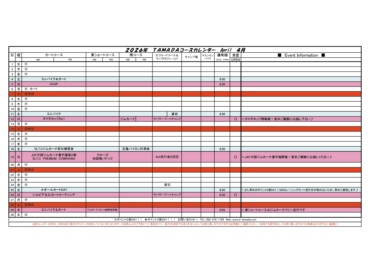 2026 TAMADAカレンダー