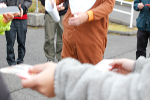 | 朝の受付が終わった方から コースの慣熟歩行 (歩いてコースを覚えてくださいね) |