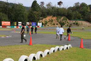 コントロールタワー下で 参加受付を行ってます 受付時間は「8:30〜9:15」 となっていますが、間に合わない方は 走行が始まっていても スタッフに声かけしてもらえれば 随時受付しています! 途中参加、午後から参加や午前のみの場合でも 参加費は通常通り6600円です |
