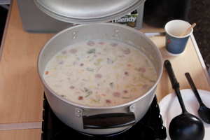 今月も、Gカップ常連のハタノシェフ(?)が 自前でクラムチャウダーを 参加者のみなさんに振る舞われてました! |